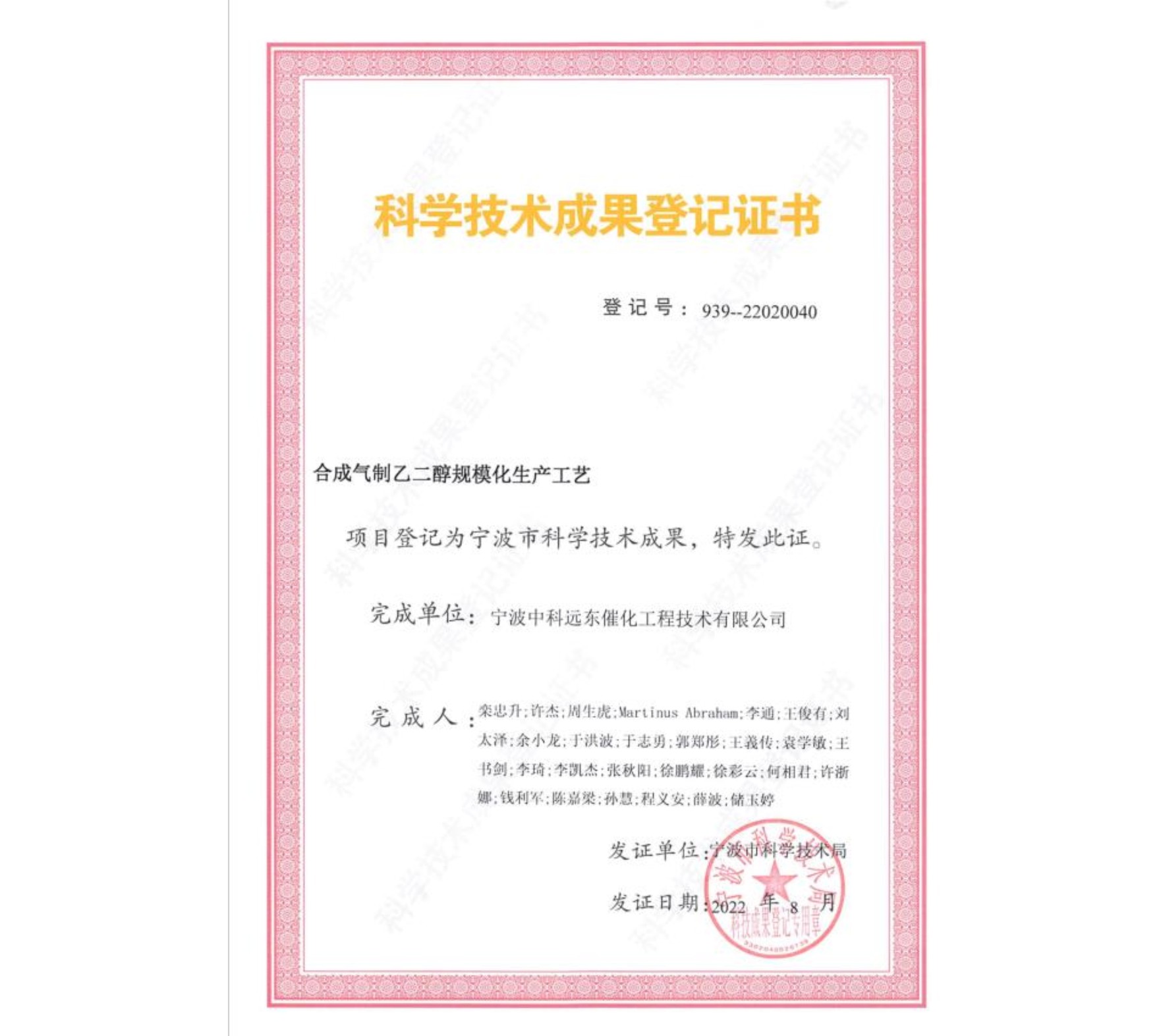 科技成果登記證書(shū)